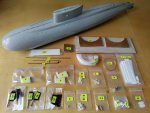 Набор для постройки модели радиоуправляемой подводной лодки   проекта 636 "ВАРШАВЯНКА"  в масштабе 1/100, длиной 726  мм, шириной 99 мм.  В наборе изделия из стеклопластика, пластика и эпоксидной смолы. Валы и тяги из нержавеющей стали, чертежи и инструкция в электронном виде.